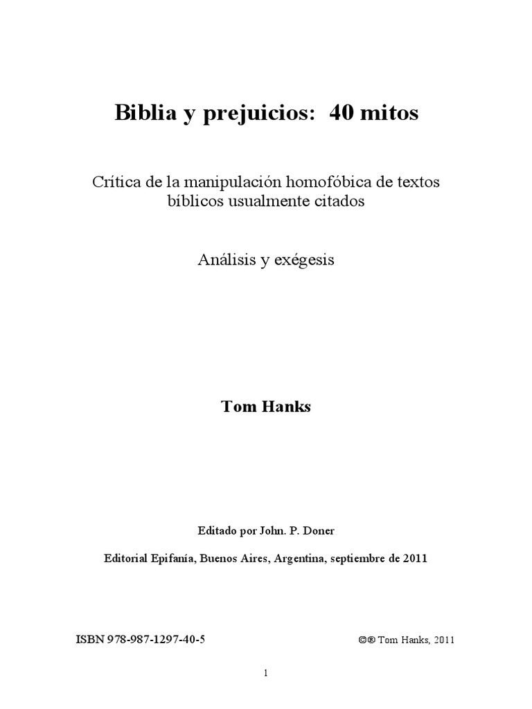 Biblia Y Prejuicios 40 Mitos De Tom Hanks Pdf Homosexualidad Homofobia