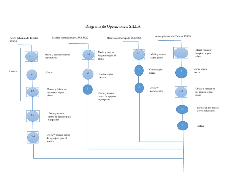 Puede además comprender cualquier otra información que se considere necesaria para el análisis. En este vídeo aprenderemos sobre Diagrama de Operaciones del Proceso DOP. SILLA Acero galvanizado Tubular 16X24 1-1 2 veces 2 3-2 Madera contrachapado 25X854X2 Med. Diagrama de Procesos de una silla. Sillas de madera metodo de trabajo.
