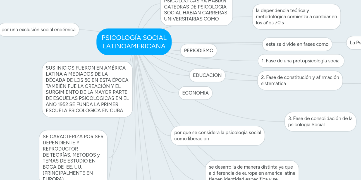 Contexto y ambiente intelectual en la gestación de la psicología social Cualquiera que se ubique en la Europa del último cuarto del siglo XIX podrá observar. Crear un mapa mental. Psicologia Social Latinoamericana Mindmeister Mapa Mental. Por luis eduardo estrada - hace 5 años. Qué Es La Psicología Social.