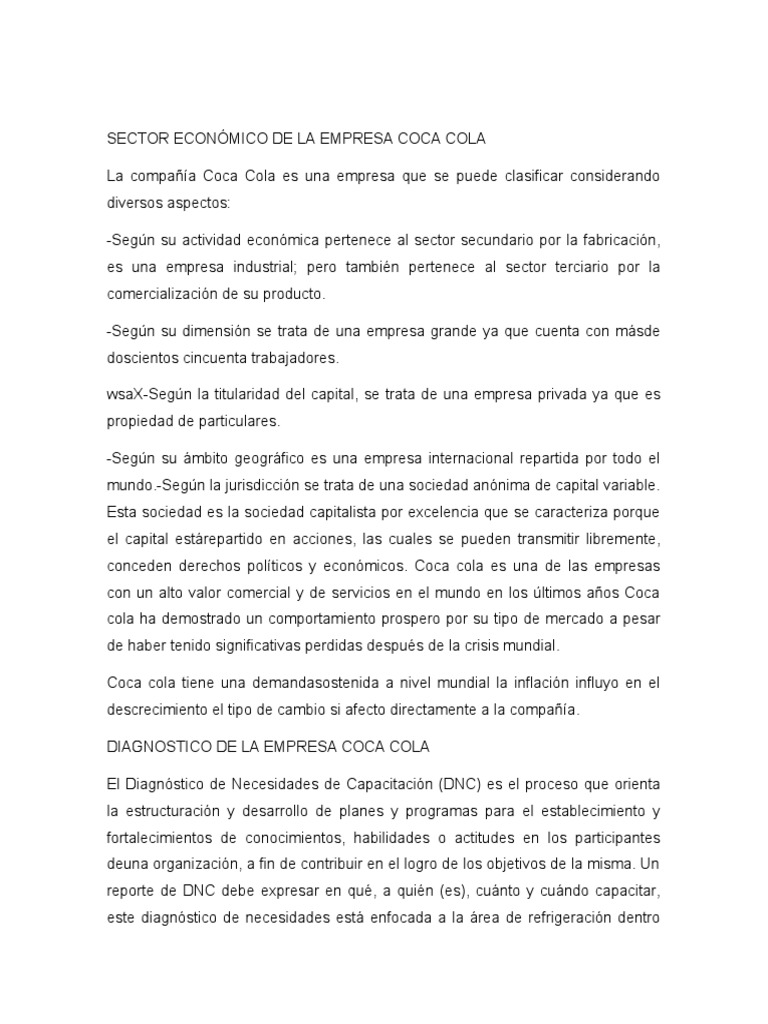 Sector Economico De La Empresa Coca Cola Pdf Coca Cola Economias